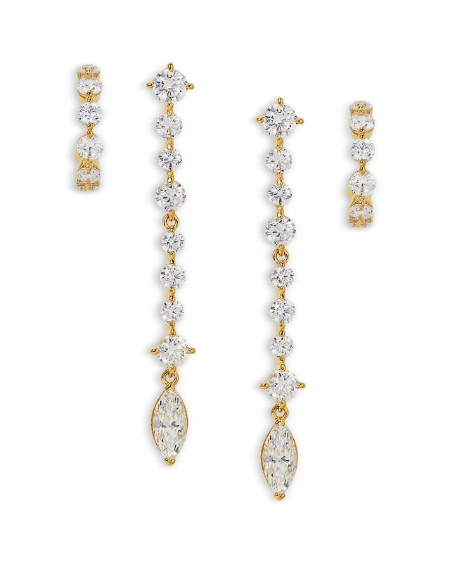 Gold Plated Brass Cubic Zirconia Marquise Earring 3-Pack