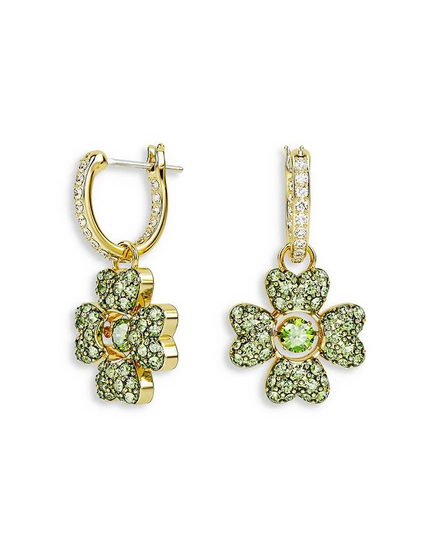 Idyllia drop earrings, Clover, Green, Gold-tone plated by SWAROVSKI