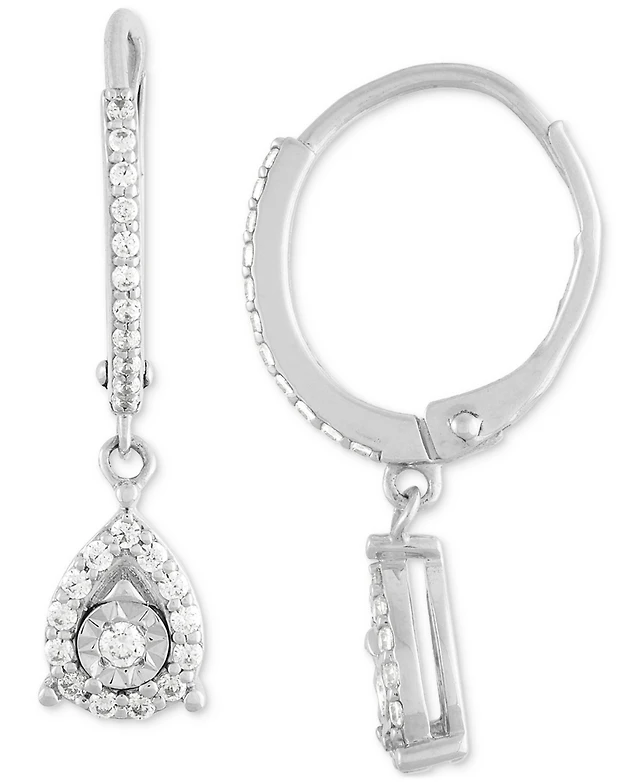 Cubic Zirconia Pear Dangle Hoop Earrings