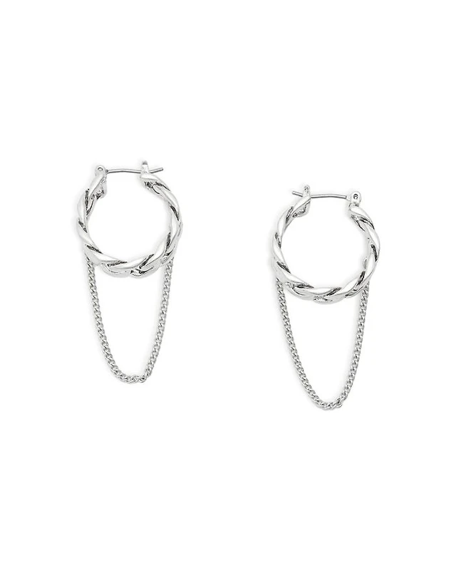 Vince Camuto Silver-Tone Rectangular Glass Stone Dangle Huggie Hoop Earrings