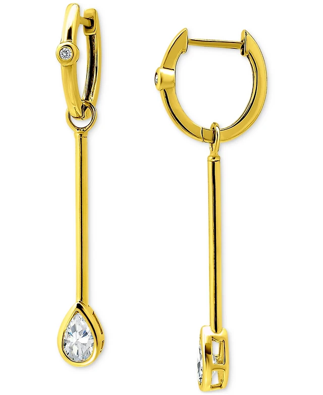 Cubic Zirconia Dangle Drop Huggie Hoop Earring in 18k Gold Plated Sterling Silver