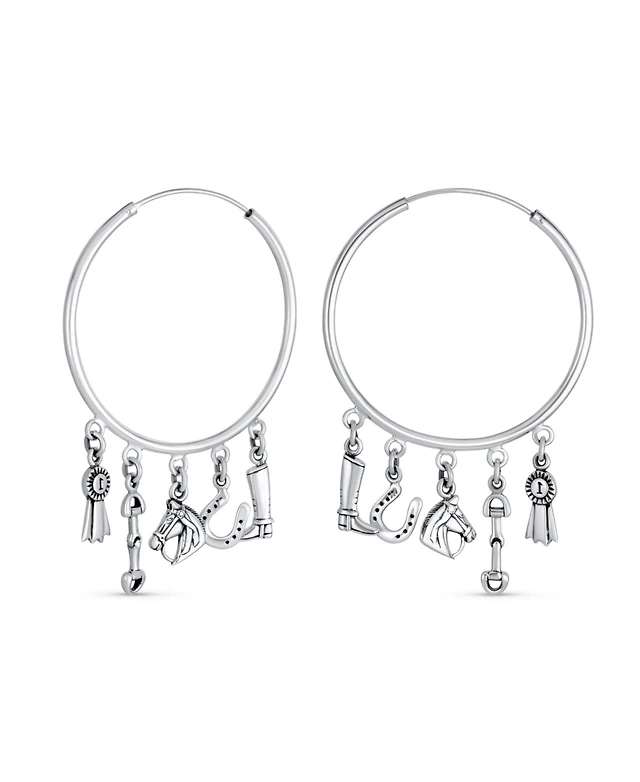 Bling Jewelry Delicate Sterling Silver Dangle Puff Heart Shaped Charm Huggie Hoop Earrings For