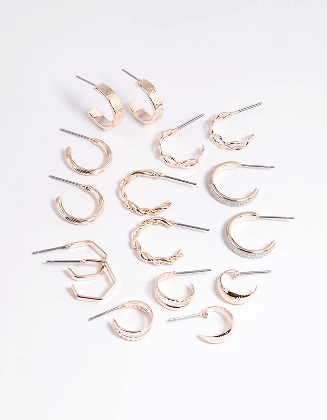 Rose Gold Textured Glitter Hoop Earring 8-Pack