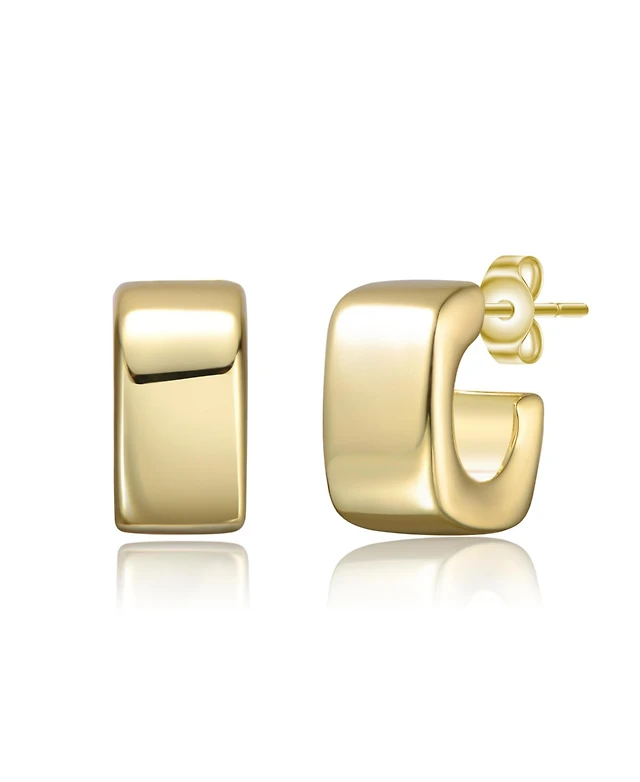Modern Chic Flattened Tubular Geometric C-Hoop Earrings White Gold Plated or 14K