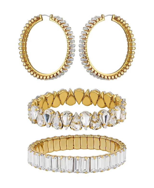 Guess 2-Pc. Glass Stone Gold-Tone Hoop Earrings and Bracelet Gift Set