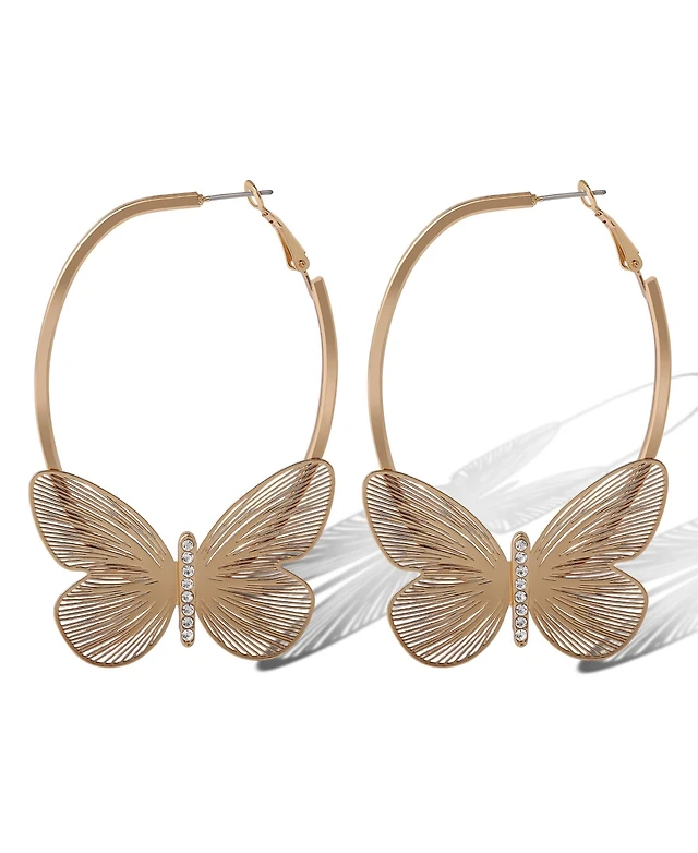 Gold Butterfly Motif Stud & Hoop Earrings 8-Pack