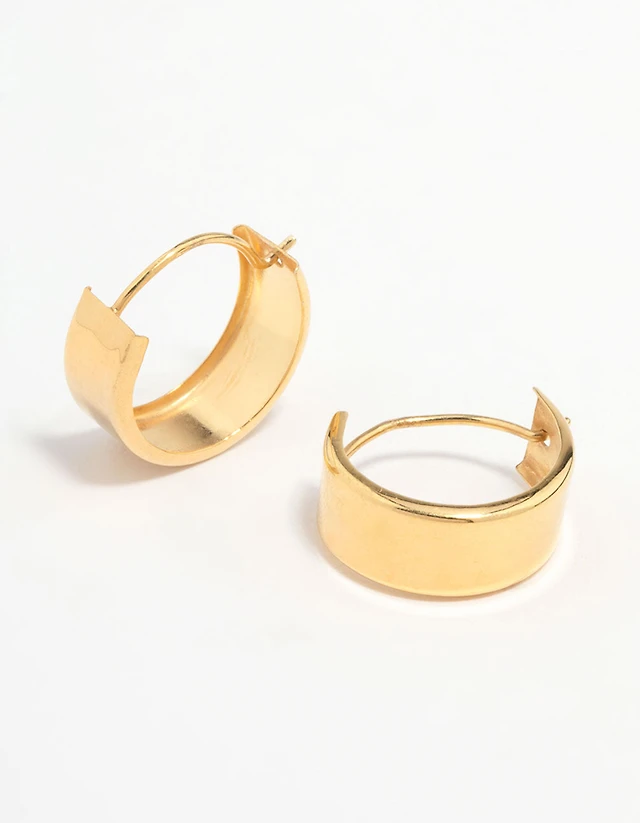 Gold Plated Brass Medium Chunky Hoop Earrings