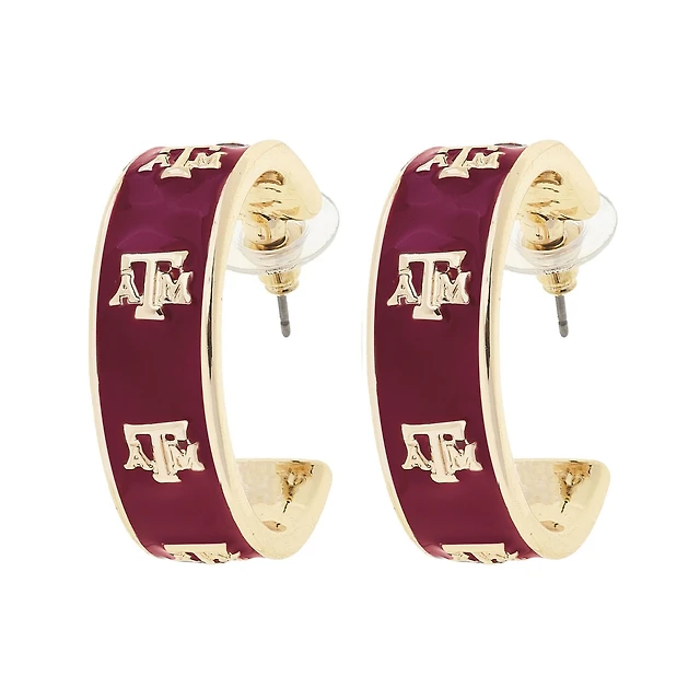 CANVAS Style Texas A&M Aggies 18k Gold-Plated Enamel Logo Hoop Earrings