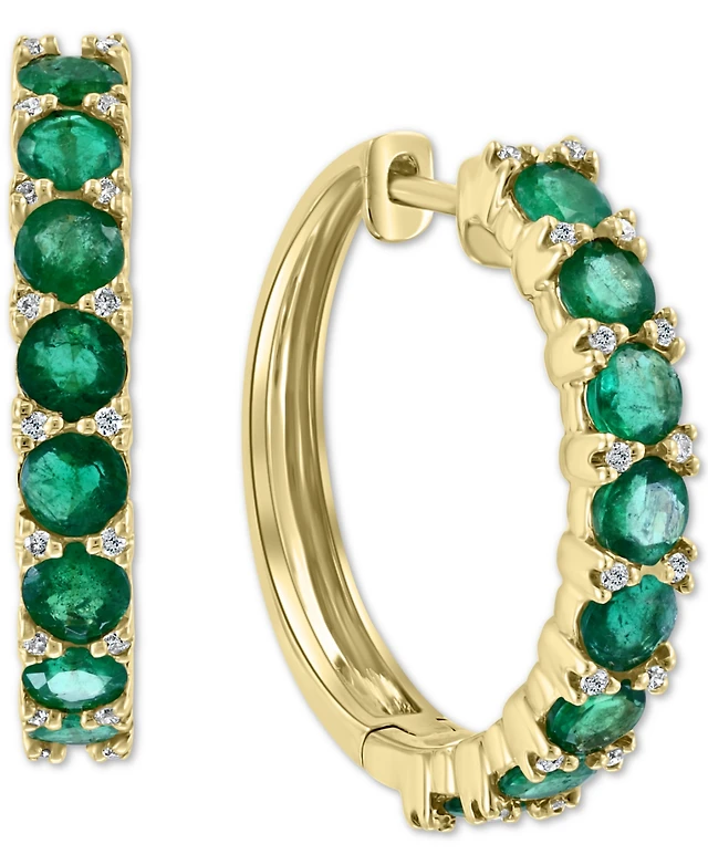 Effy Emerald (2-3/4 ct. t.w.) & Diamond (1/6 ct. t.w.) Hoop Earrings in 14k Gold