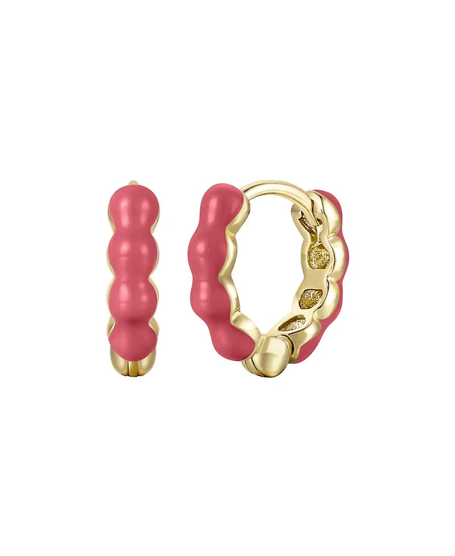 Ra Children's 14k Gold Plated with Magenta-Red Enamel Inlay Bubble Hoop Earrings