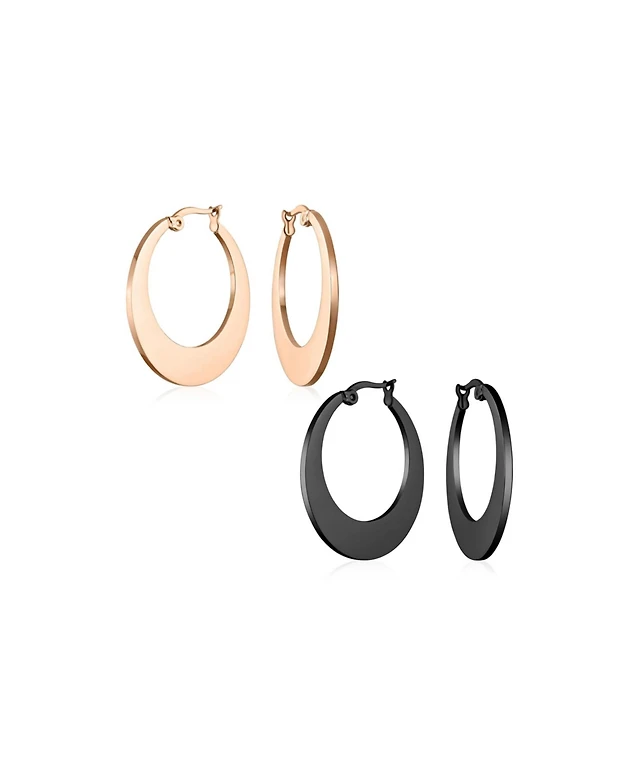 Bling Jewelry Set of 2 Flat Oval Hoop Huggie Earrings Black Rose Gold Plated Steel 1.25 Inch