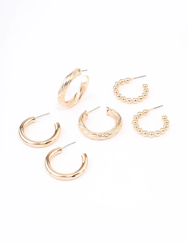 Gold Mixed Hoop & Stud Earrings 4-Pack