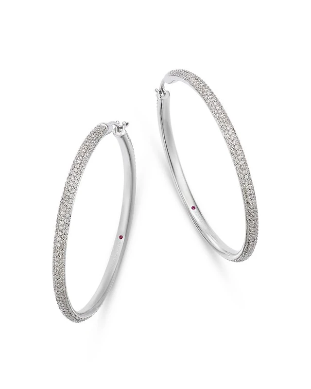 18K White Gold Diamond Hoop Earrings, 3.4 tcw