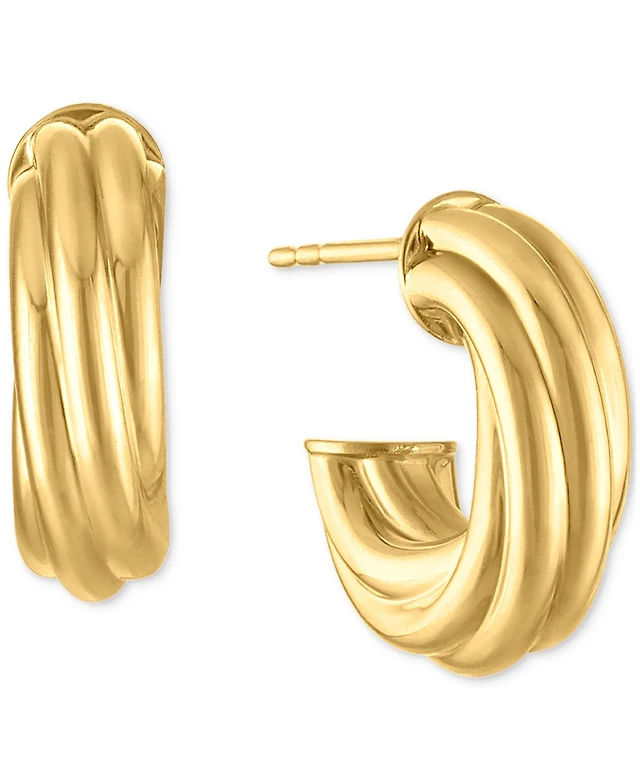 Twisted J-Hoop Extra Small Huggie Hoop Earrings in 10k Gold, 0.25"