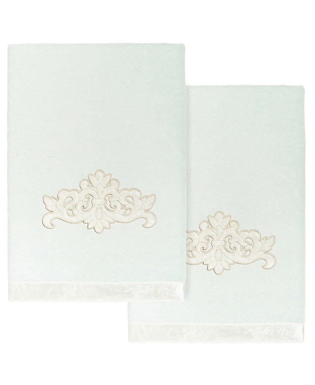Superior Larissa Cotton Geometric Embroidered Border Assorted Towel Set Collection