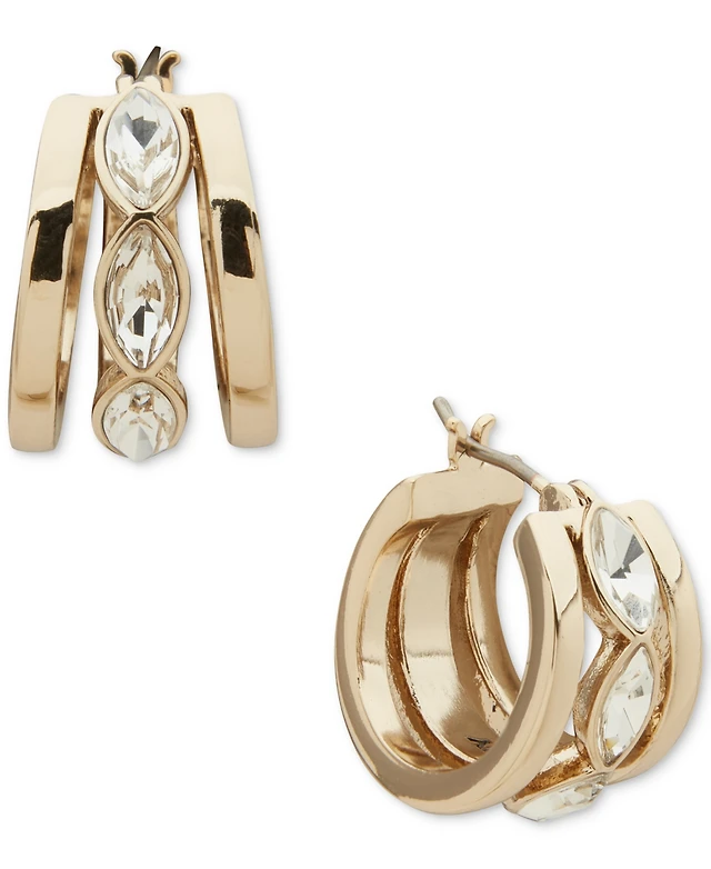 Anne Klein Crystal Gold-Tone Ribbed Texture Hoop Earrings