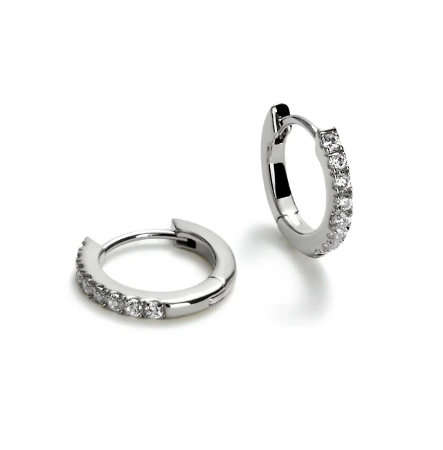 Huggie Earrings With Silver Sparkle Charm 1.3″