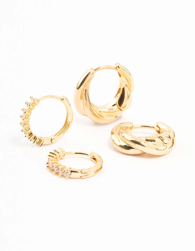 Gold Diamante Drop Huggie Earrings 4-Pack