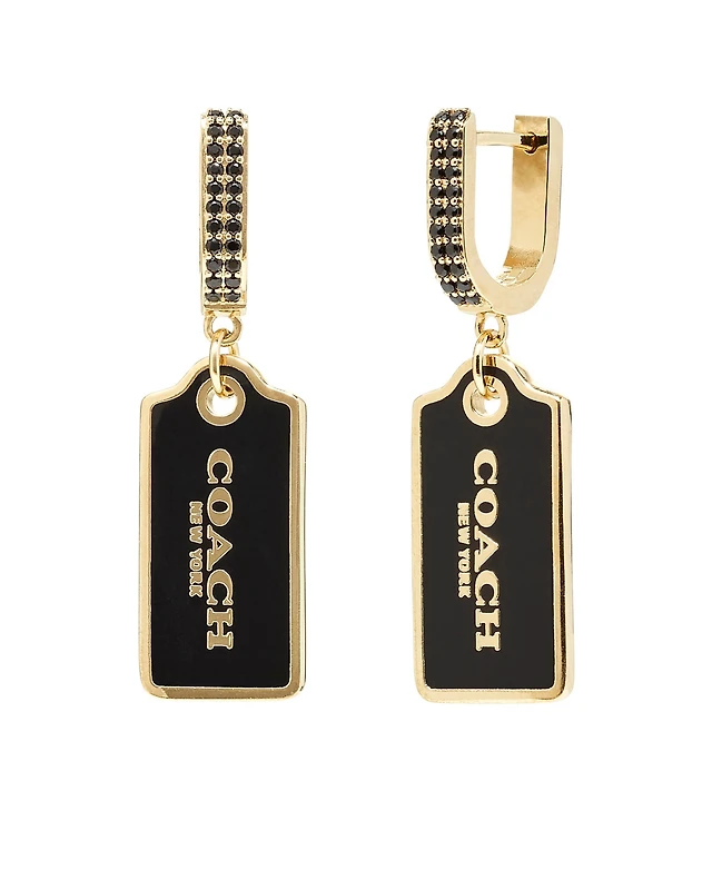 Coach Faux Stone Signature Charm Huggie Earrings