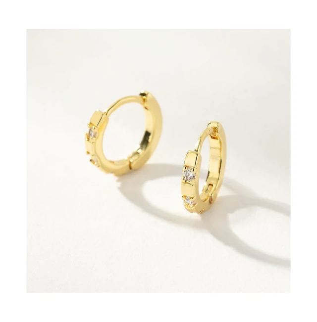 Gold Plated Cubic Zirconia Round Huggie Earrings