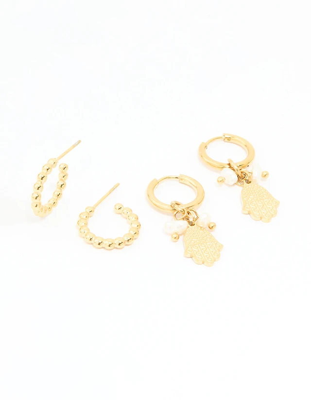 Gold Pearl Stud And Hoop Earrings 3-Pack