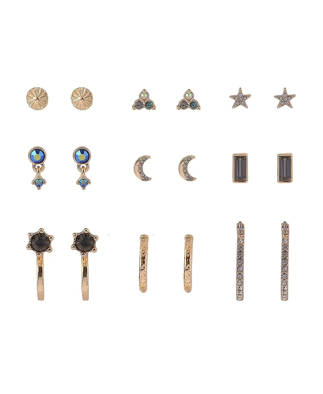Mixed Metal Diamante Hoop & Stud Earrings 3-Pack