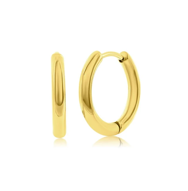 Waterproof Gold Plated Stainless Steel Cubic Zirconia Chain Huggie Earrings 2-Pack