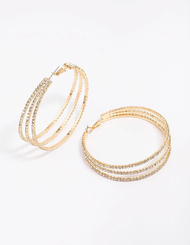 Gold Tripple Diamond Cut Hoop Pack Earring