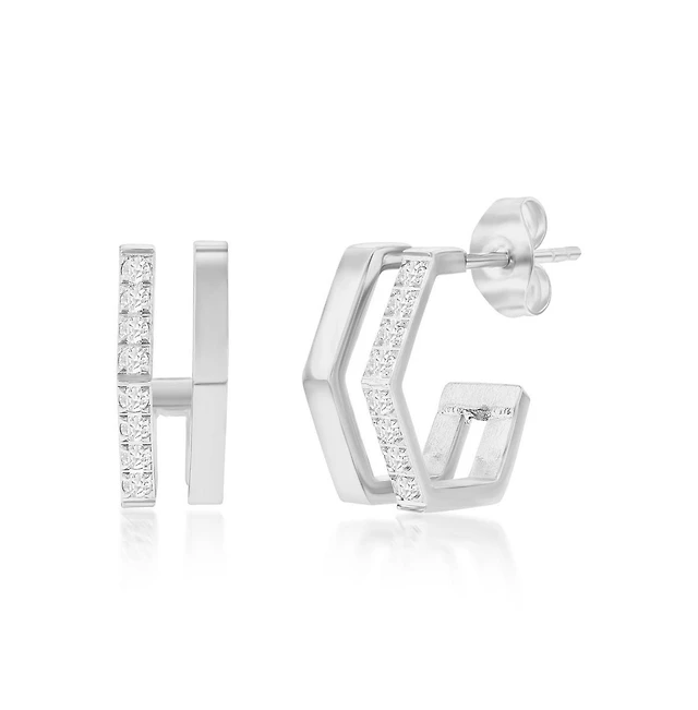 Metallo Stainless Steel, Geometric Cz Hoop Earrings