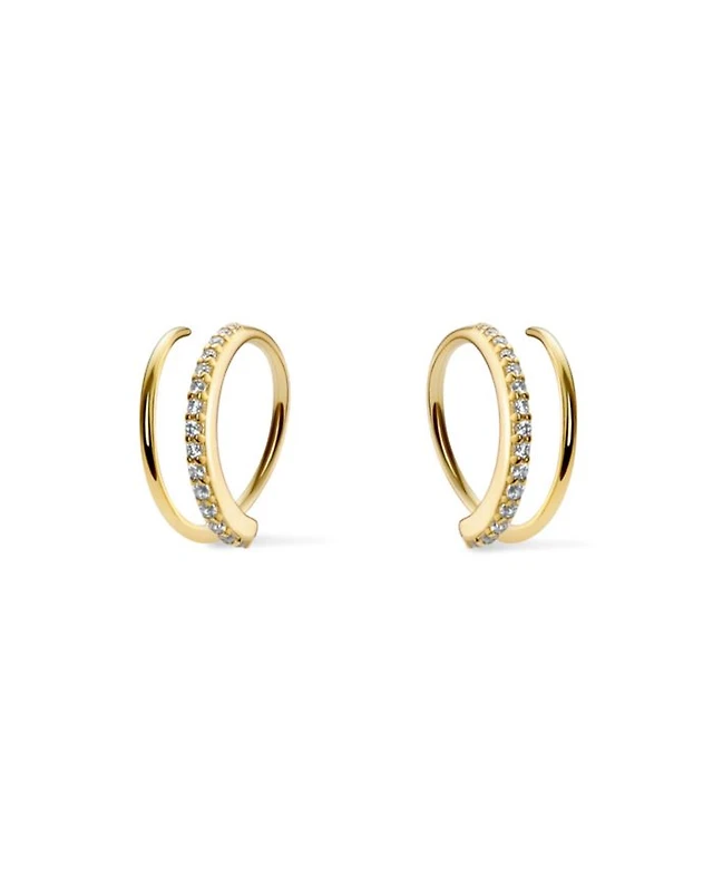 Gold Plated Cubic Zirconia Pave Rectangle Hoop Earrings