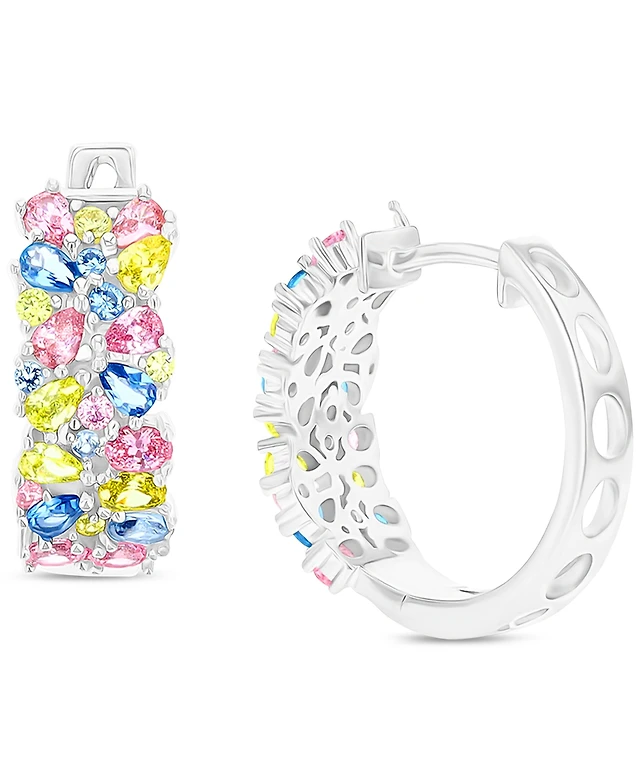 Multicolor Cubic Zirconia Cluster Small Hoop Earrings, 0.75"