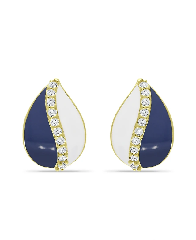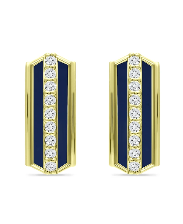 Interlock Cubic Zirconia Half Blue Huggie Hoop Earrings