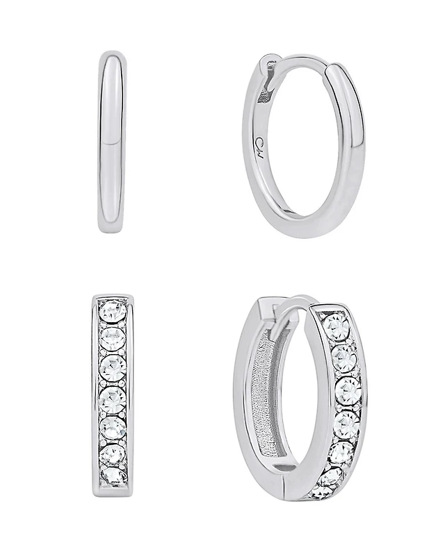 Adornia Silver Hoop, Solitaire and Ball Stud Earrings Set