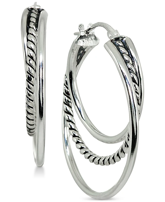 Macy's Silver-Tone Textured Wide Large Hoop Earrings, 2.5"