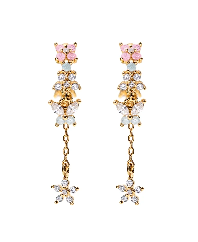 Gold Plated Sterling Silver Cubic Zirconia Flower Hoop Earrings