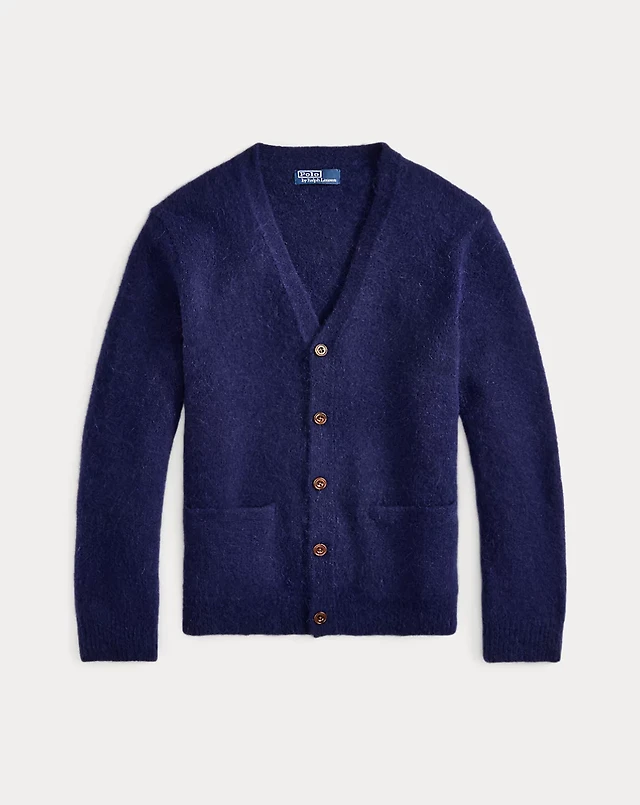 Suede-Patch Wool-Blend Cardigan