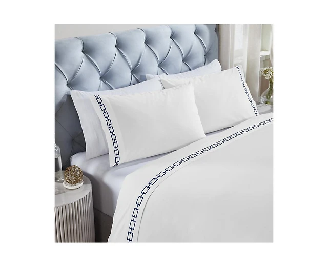 Pointehaven 300 Thread Count Embroidered Cotton Oversized Percale Sheet Sets