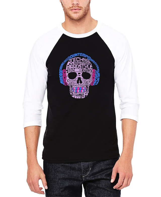 Men's Raglan Baseball Word Art Styles of Edm Music T-shirt