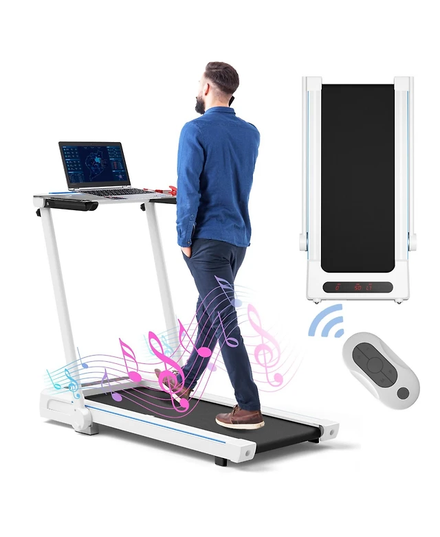 Kuyotq 3-in-1 Folding Treadmill with Large Desk and Lcd Display