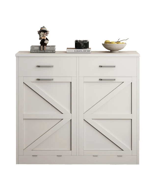 White Tilt Out Trash Cabinet with 2 drawer, Quick Installation and Deodorising Function, Wooden Freestanding Trash Can Cabinet Holds Up to 2x10 Gallon