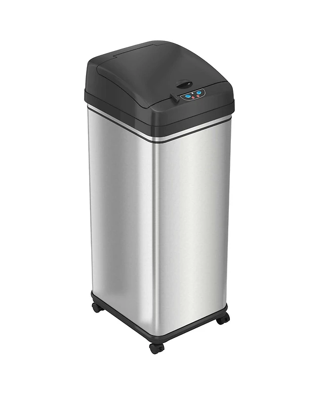 iTouchless Stainless Steel Sensor Trash Can with Wheels and AbsorbX Odor Filter 13 Gallon Silver
