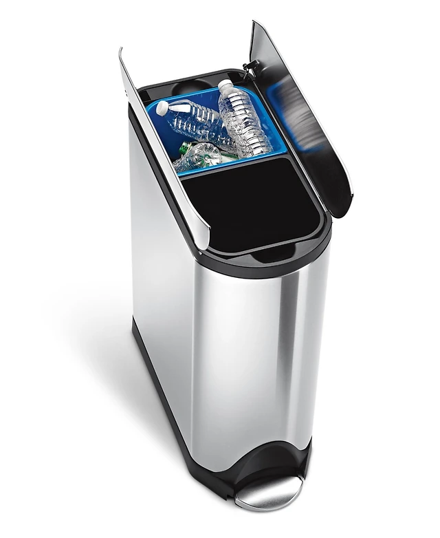 10.6 gallon rectangular step-on recycling trash can with two 20 liter compartments