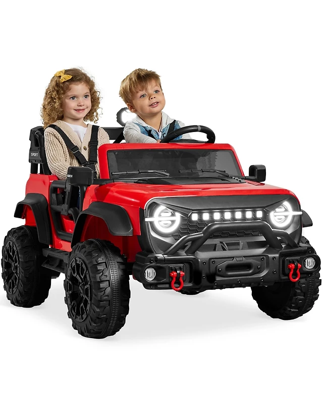 Funtok 24V 2 Seater Ride On Truck Electric Car w/ Parent Remote Control, Music, Led Lights, Spring Suspension
