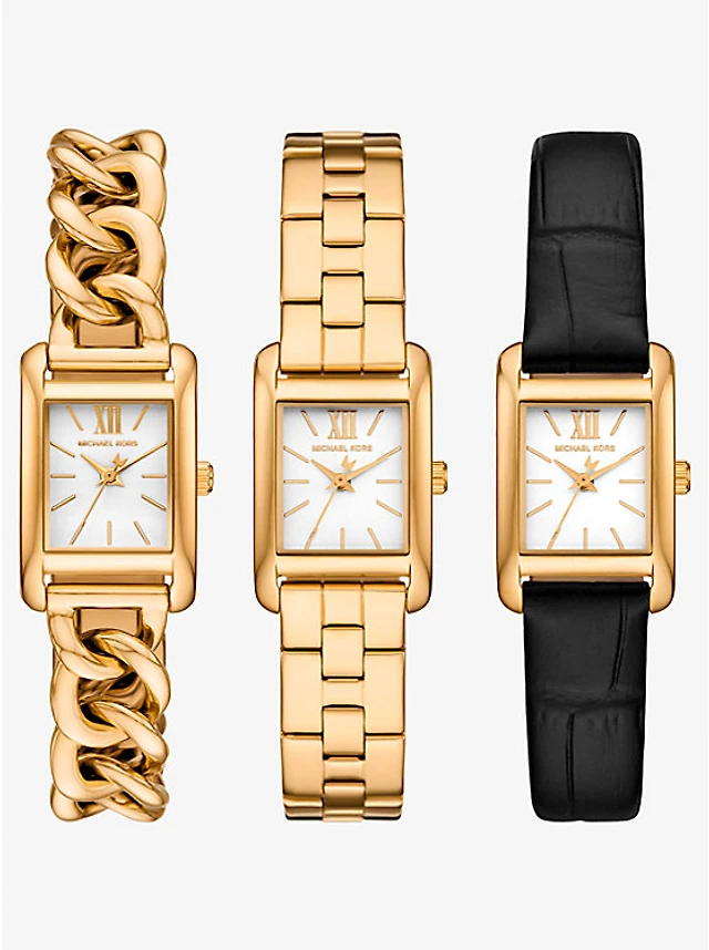 Petite Monroe Gold-Tone and Crocodile-Embossed Leather Watch Strap Set