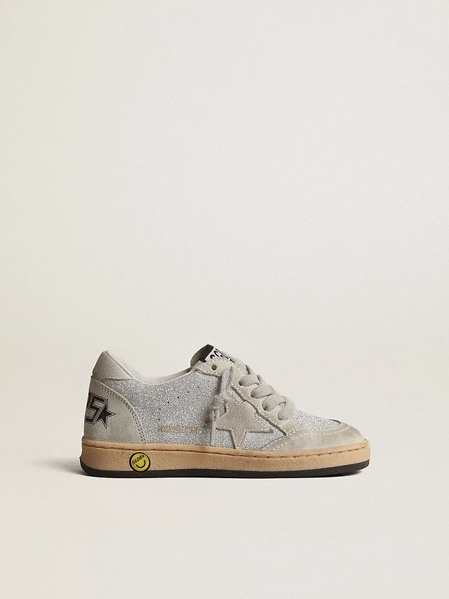 Young Francy sequins with ice-gray suede star and animal-print laces