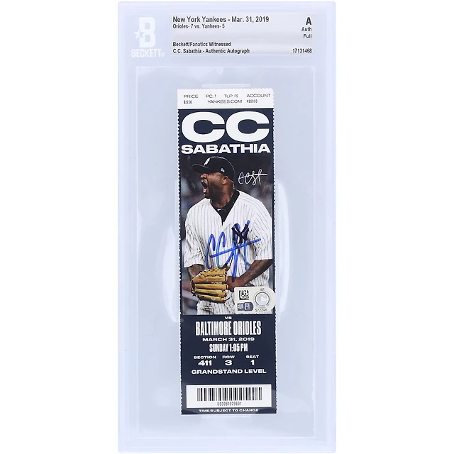 CC Sabathia New York Yankees Autographed Beckett Fanatics Witnessed Authenticated 9 Ticket