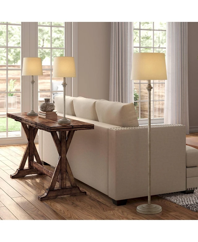 360 Lighting Carter Rustic Farmhouse 3 Piece Table Floor Lamp Set Beige Metal Cream Fabric Tapered Drum Shade for Living Room Bedroom Office House