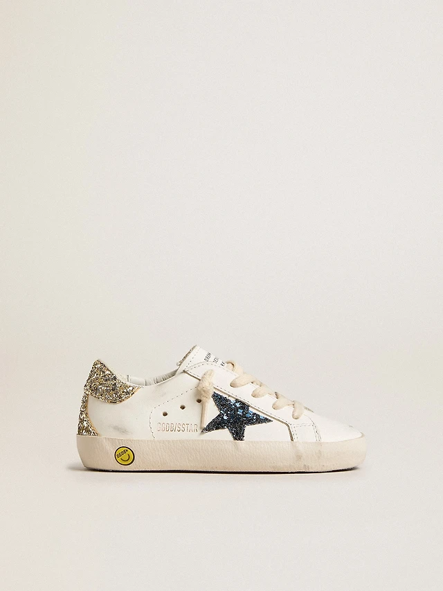 Young Super-Star nappa leather with a beige star and blue heel tab