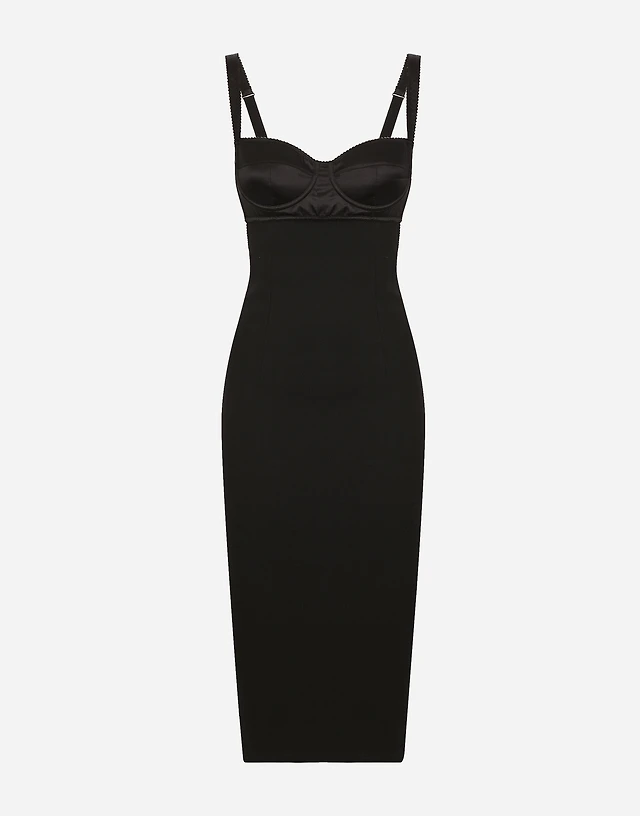 Calf-length jersey and lace dress with corset details