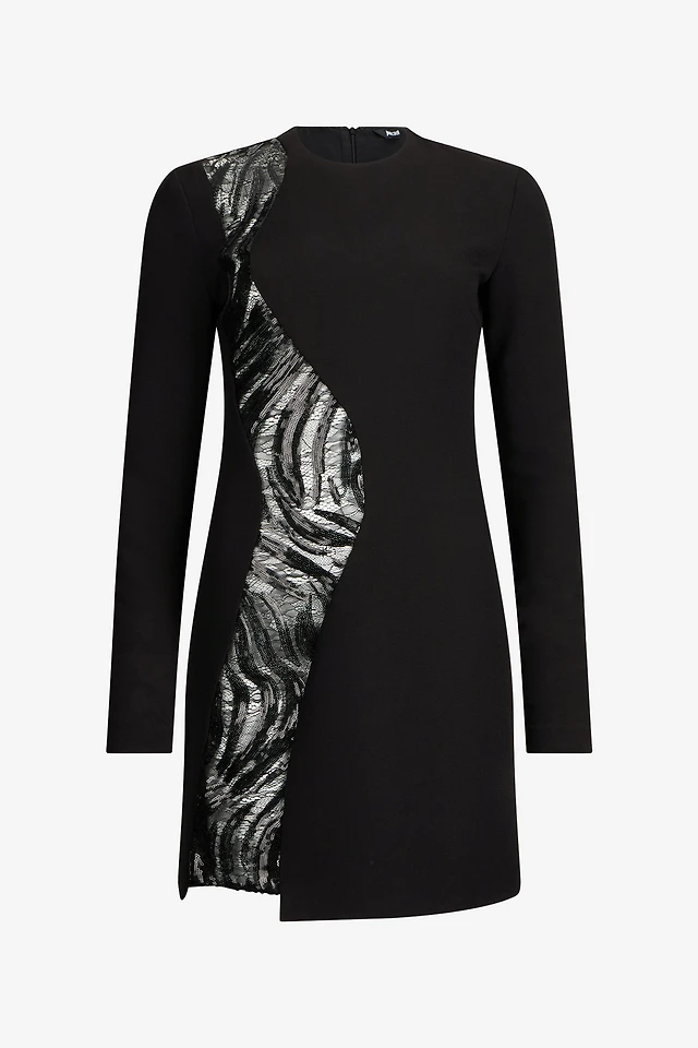 Black Mini Dress With Sequin Insert